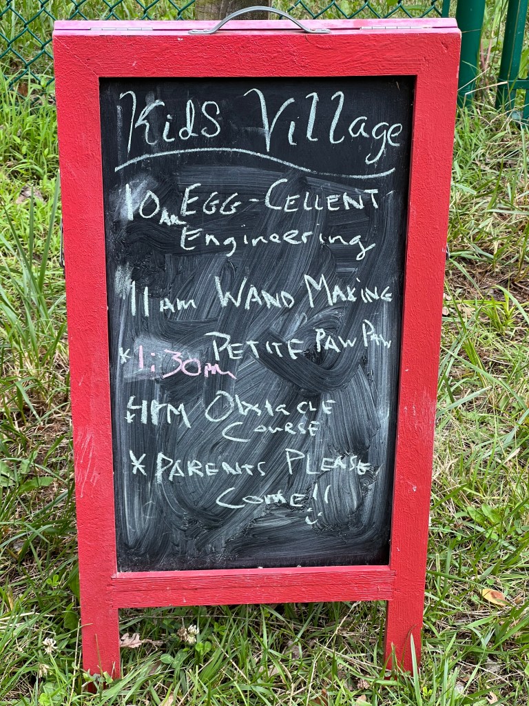 I brought my older kiddo with me, since I knew Wisteria had a Kid Village. It was absolutely the right choice. Kid Village has improved so much since I last attended. Not only do they have a fully fenced-in area now, they also had full kids programming from 8a-5p every day of the festival. So I got to spend the days attending workshops and socializing, and knew that my kid was getting to the same. I asked them at one point (since they’re 10) if they wanted to do some of the workshops and activities that they were old enough to do, and they said no, they’d rather stay with their new friends and do the kids activities. So bravo to the Kids Village volunteers!