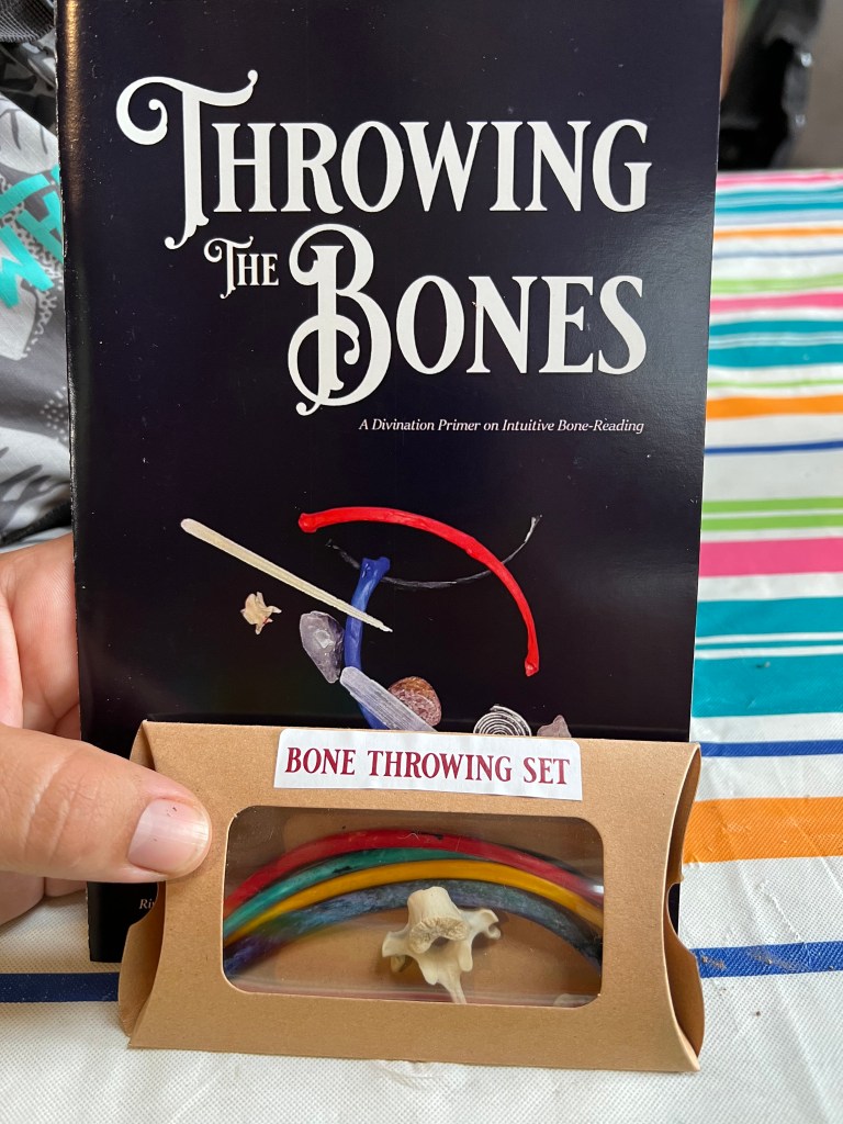 Probably my favorite workshop was on Osteomancy (bone-throwing) presented by River. I’ve been wanting to explore this divination style for awhile, and his workshop was really well structured and thought out, with clear pathways for beginning the work. It is an open divination style, and I think with my work in fire scrying and oracular stuff already, I should be able to incorporate bone throwing fairly well. My purchase for the weekend was a beginning set of bones to start a set.