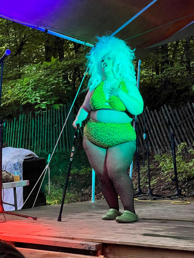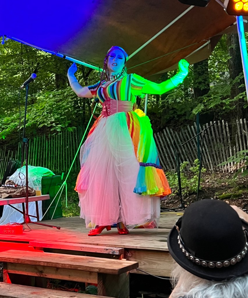 I attended the Pride Night Drag Show, Burlesque Show, and Tea Dance. It was so much fun! Also, A+ for inclusive drag. I had never really gone to the Green man Tavern during my previous times at Wisteria, and the fact that the whole evening focused on queer community, it was just wonderful. I think that’s one of the biggest changes in feel I’ve experienced from Wisteria 7 years ago to now. Now it is so focused on consent and the queer experience and inclusive joy.