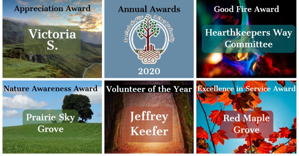So, I’m proud to say that the book I wrote with Rev. Lisa Wasilkowsky Malik, Rev. Sara Blackwelder, and Rev. Kirk Thomas won the Good Fire Award in ADF this year. I have no idea if we’re getting physical plaques or anything this year, but it would be nice. I like being able to display them.