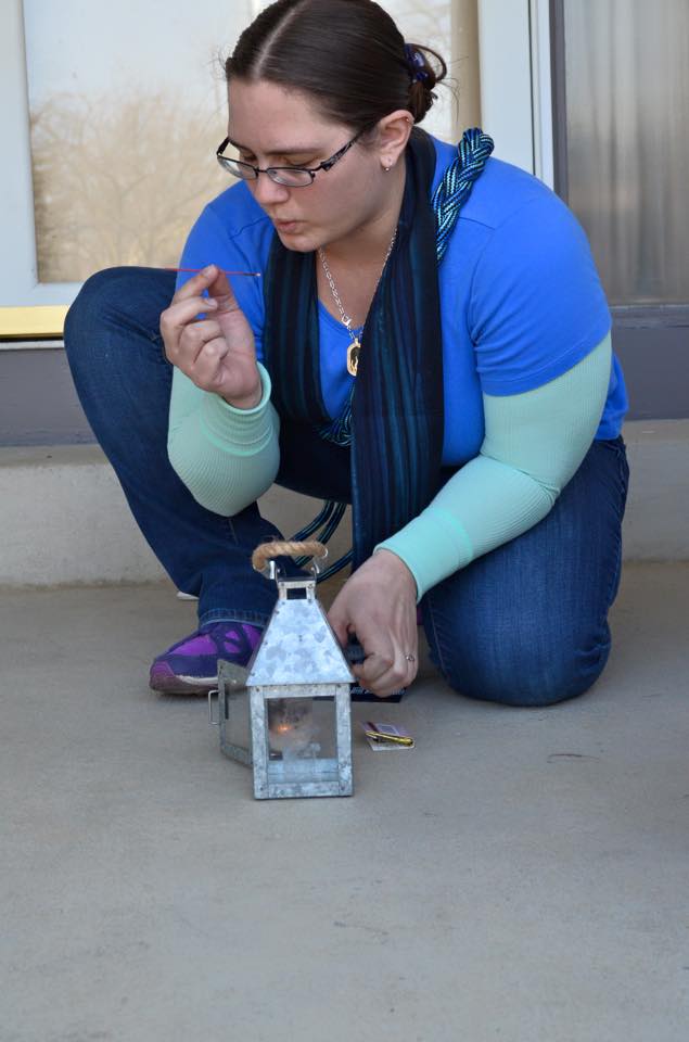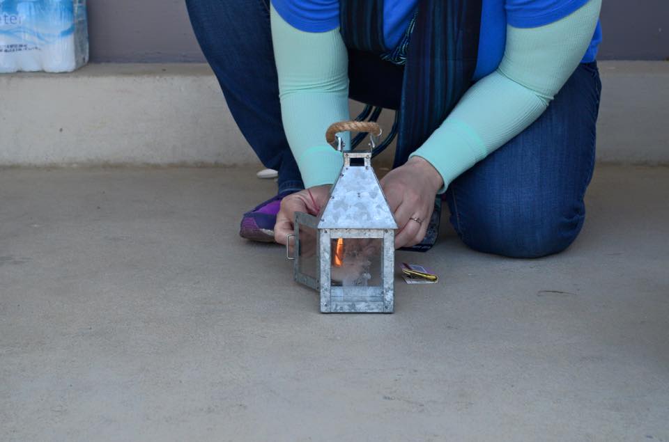 – three burning candles with enough space in the center for all tools to be placed OR if outside, space for everyone to stand around the Fire in a circle